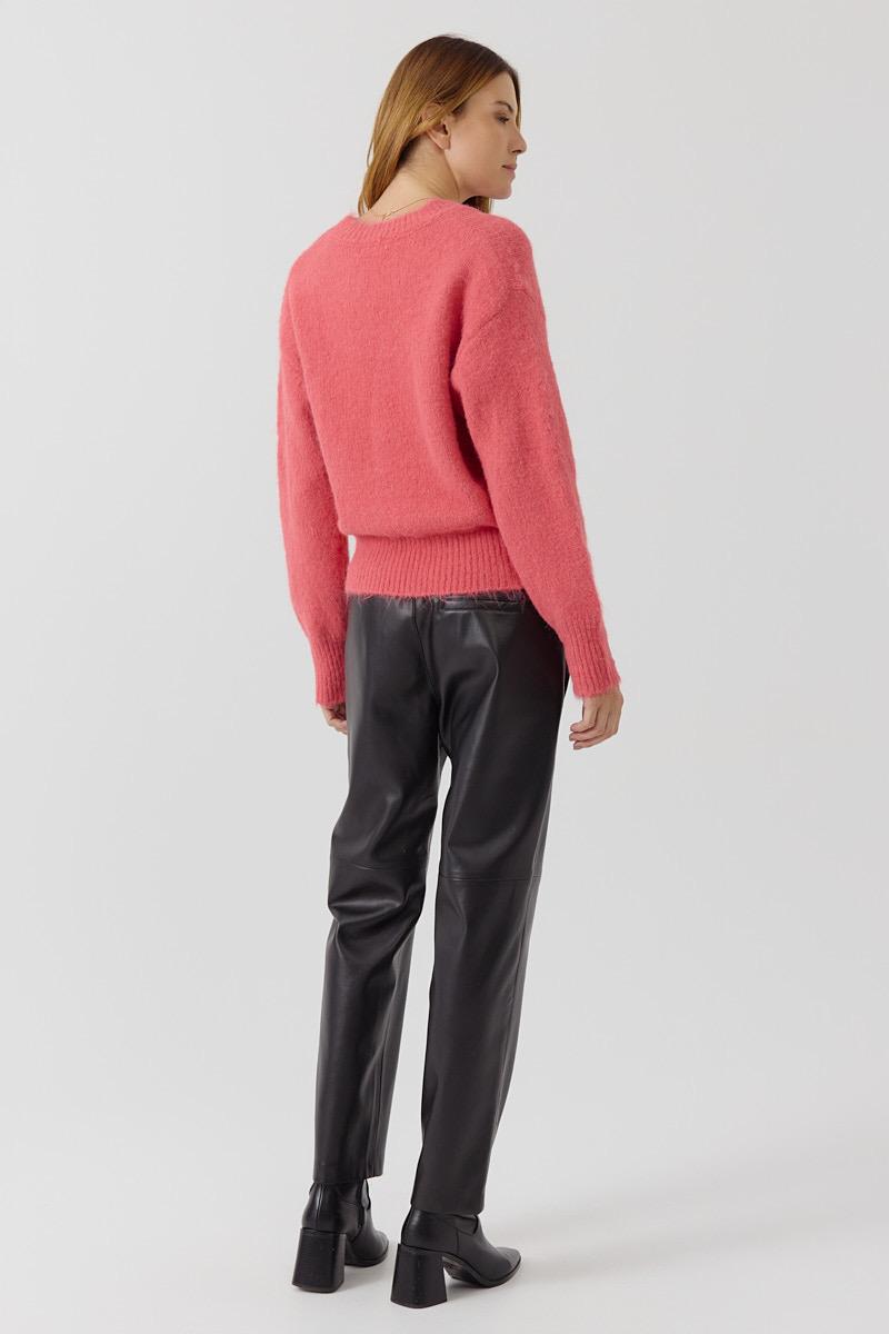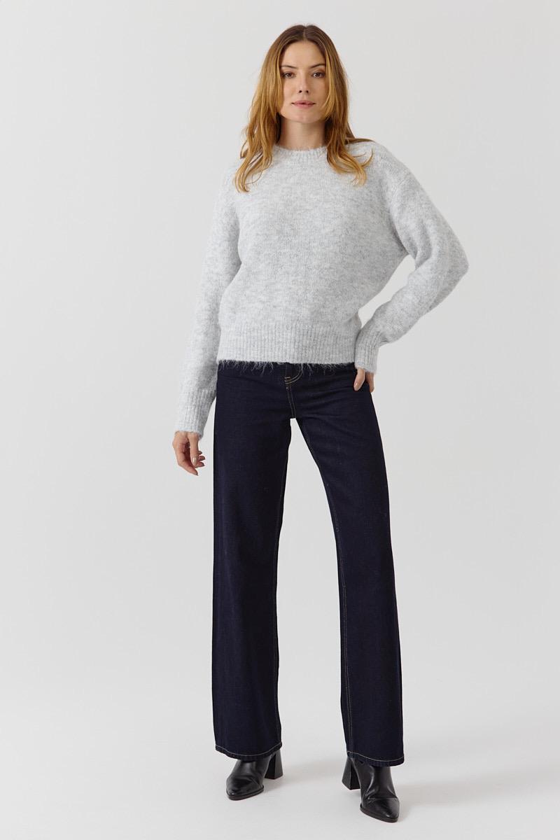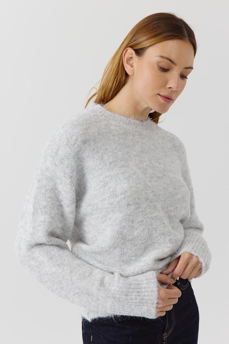 Suéter de manga larga y cuello redondo. Tejido de punto suave y esponjoso con efecto pelo. Diseño relajado y oversize. Remate de punto de canalé en los puños y el bajo.