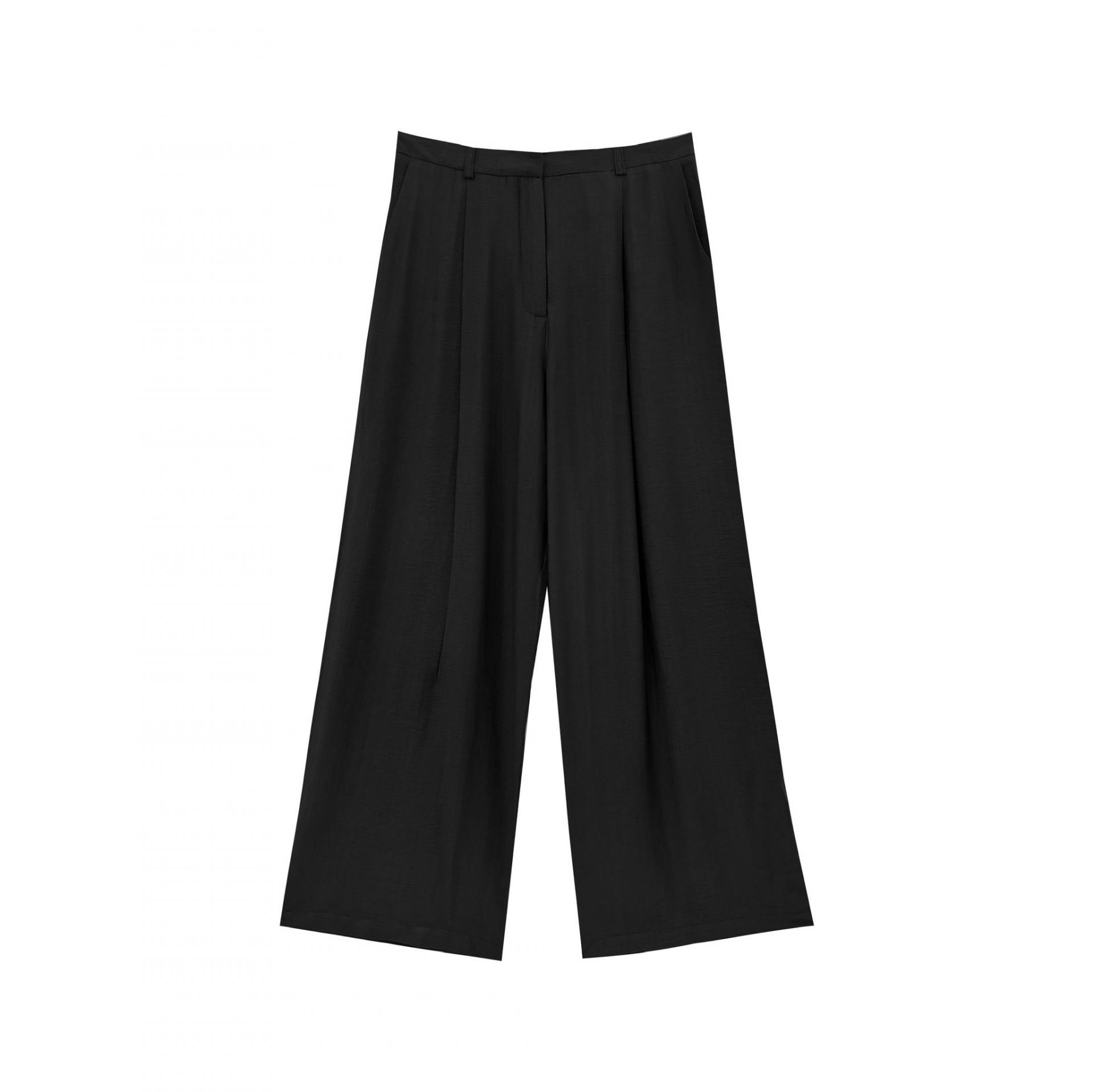 Pantalón de pierna recta con bolsillos con dos pinzas frontales. Tejido fluido y ligero.