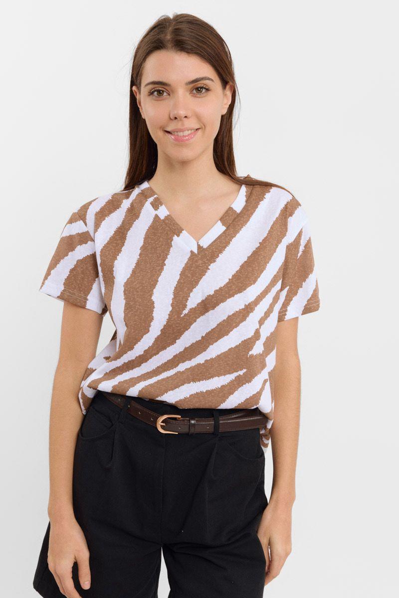 Camiseta básica de cuello de pico con estampado animal print.