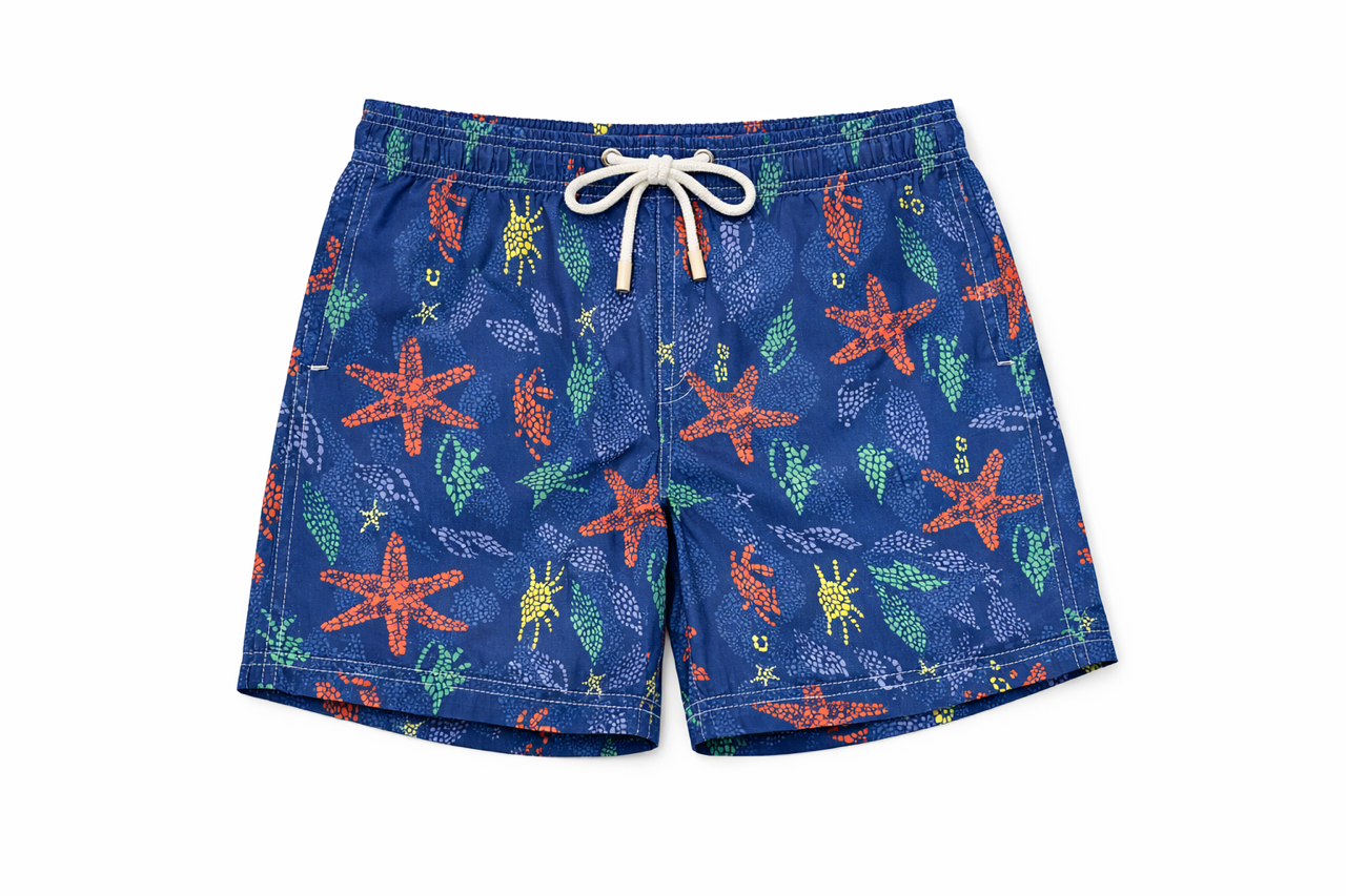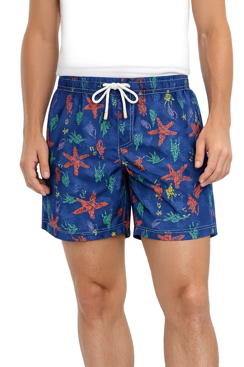Bañador de hombre estampado con bolsillos laterales y bolsillo con cierre de velcro. Goma en cintura.