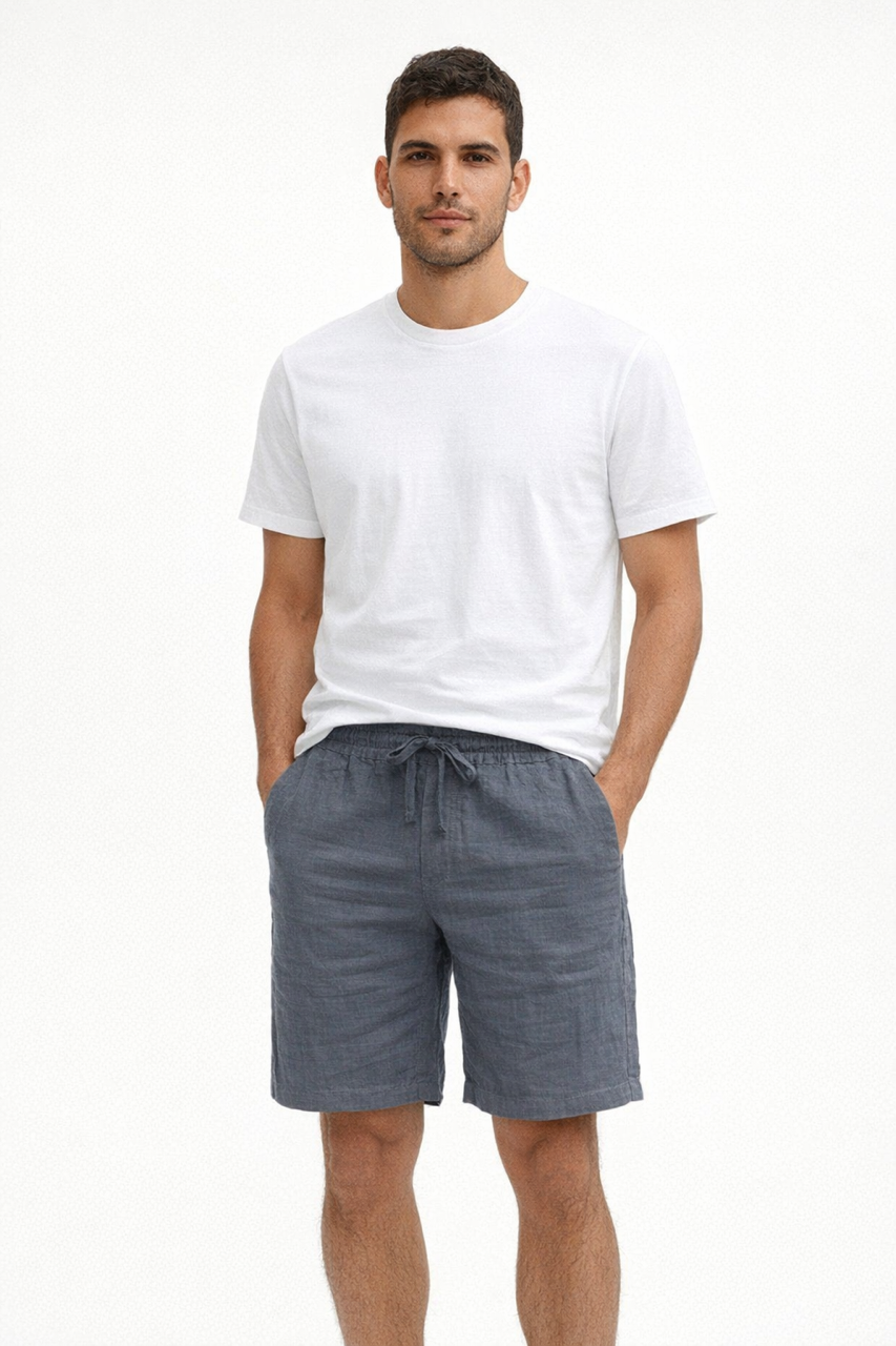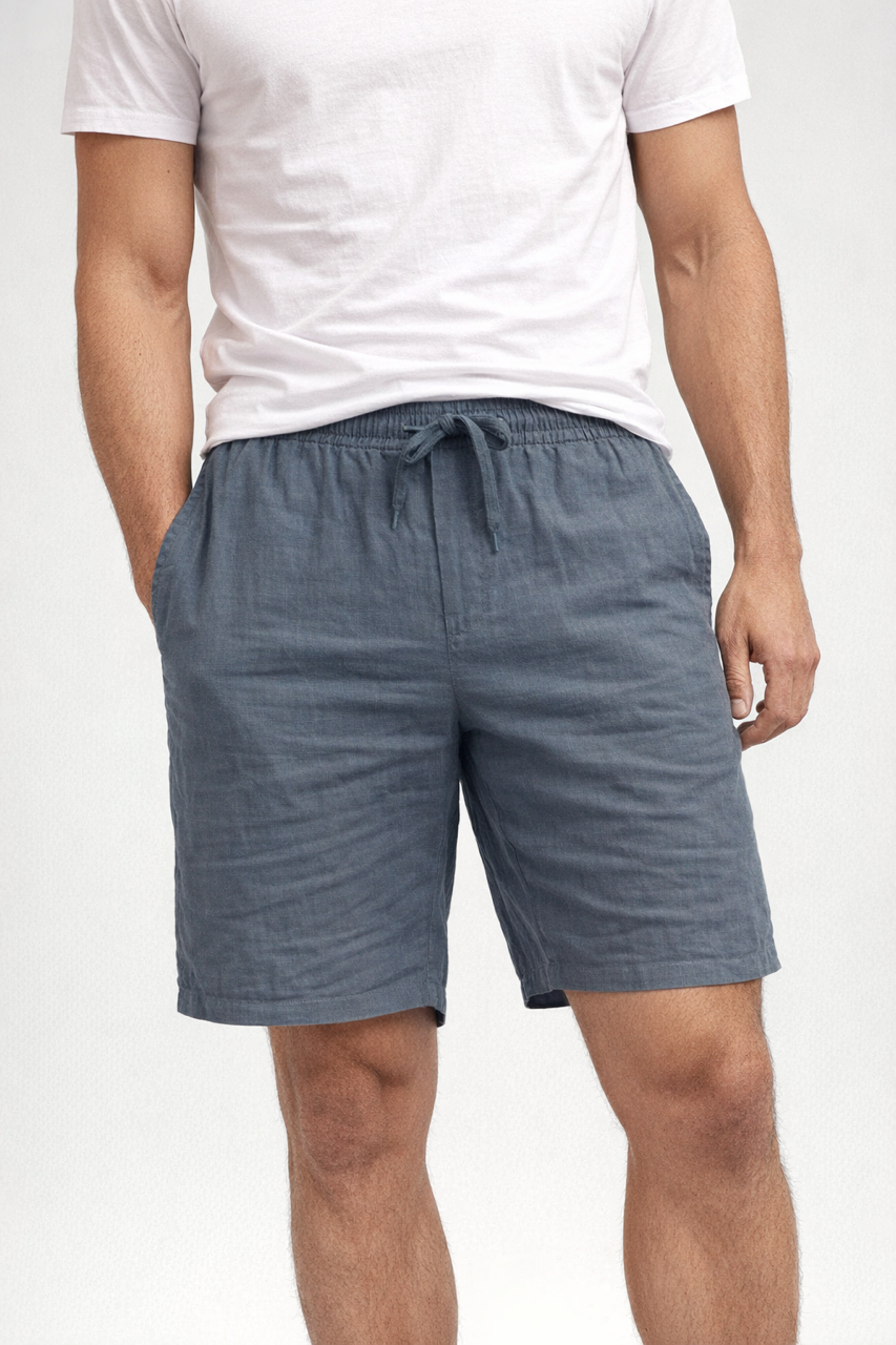 Short de hombre con bolsillos y atado a cintura. Bolsillo trasero con cierre de botón. Tejido fresco y ligero.